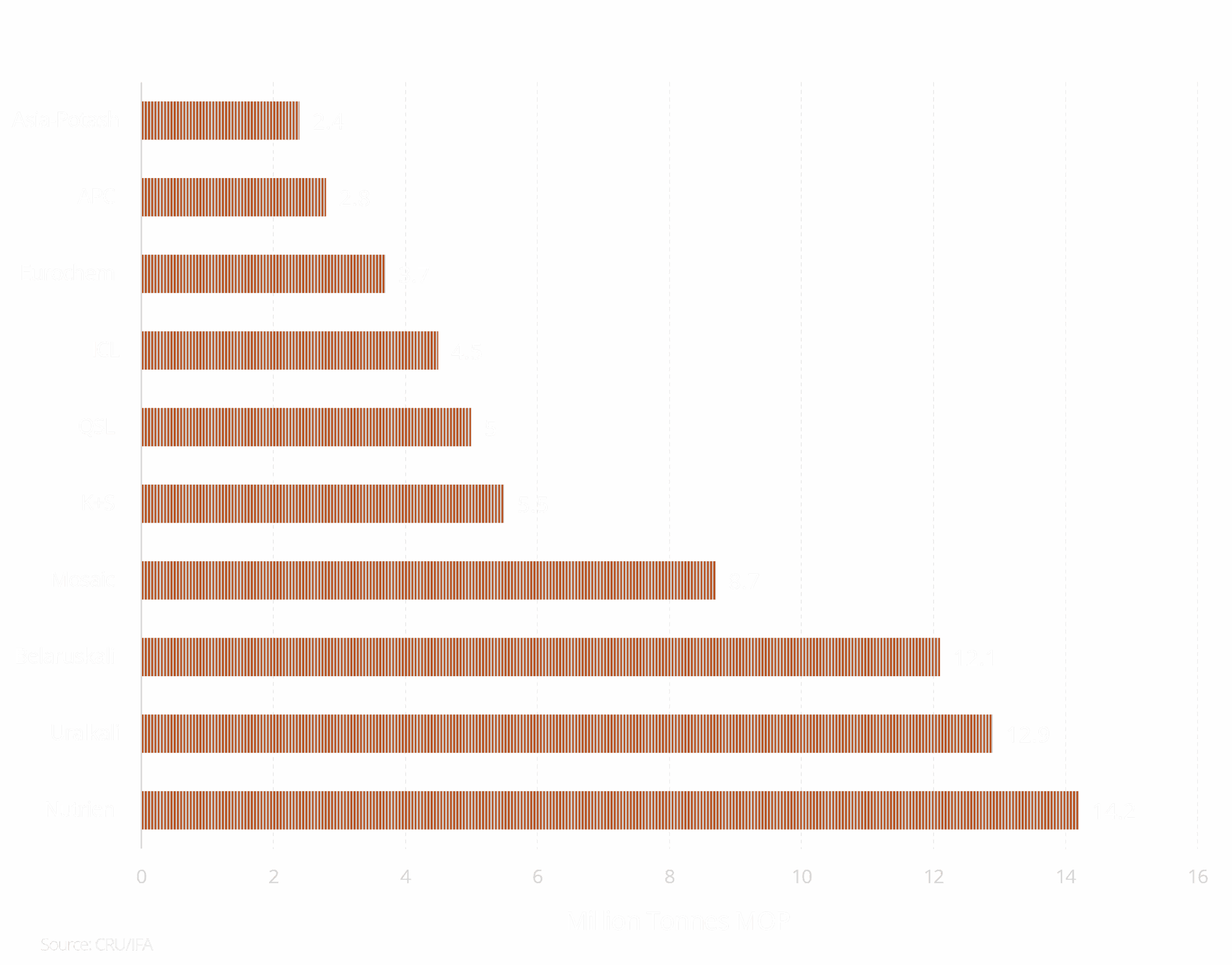 Potash is transported both by the producers themselves and for some, through Canpotex (a joint venture owned by Mosaic and Nutrien)